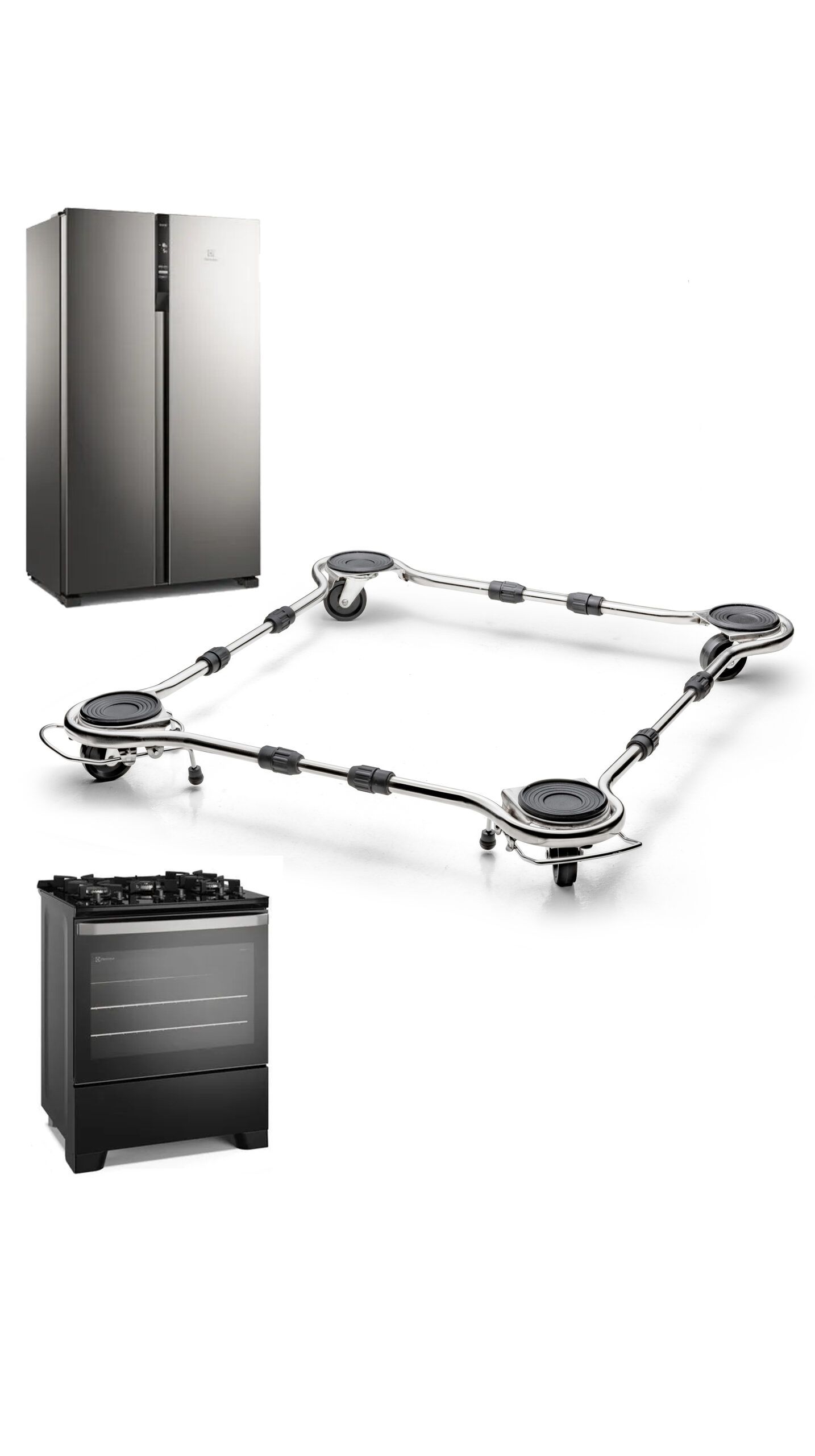 Rodabem Inox para tamanhos grandes. Serve para geladeiras Side by Side, Fogões de 5 ou 6 bocas, Móveis alongados etc.
