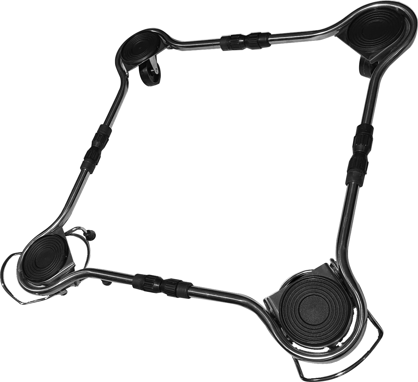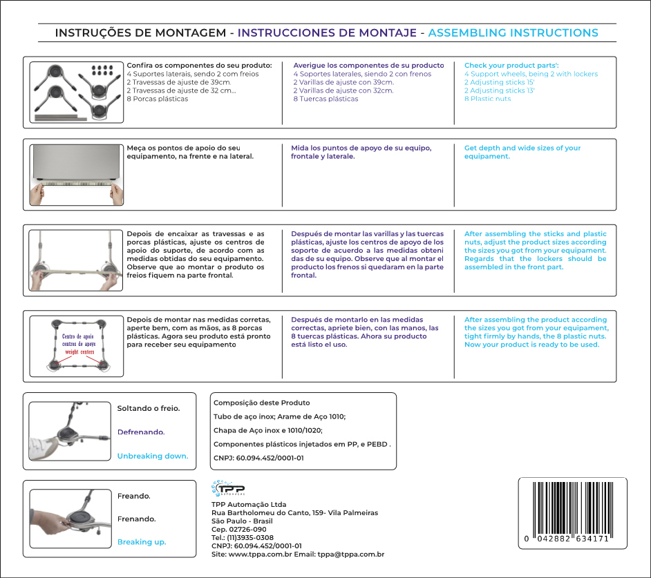 Tem todas as característica do Rodabem normal e a única diferença está no tamanho das travessas que permite seu fechamento total. Veja as dimensões que ele assume no gráfico.